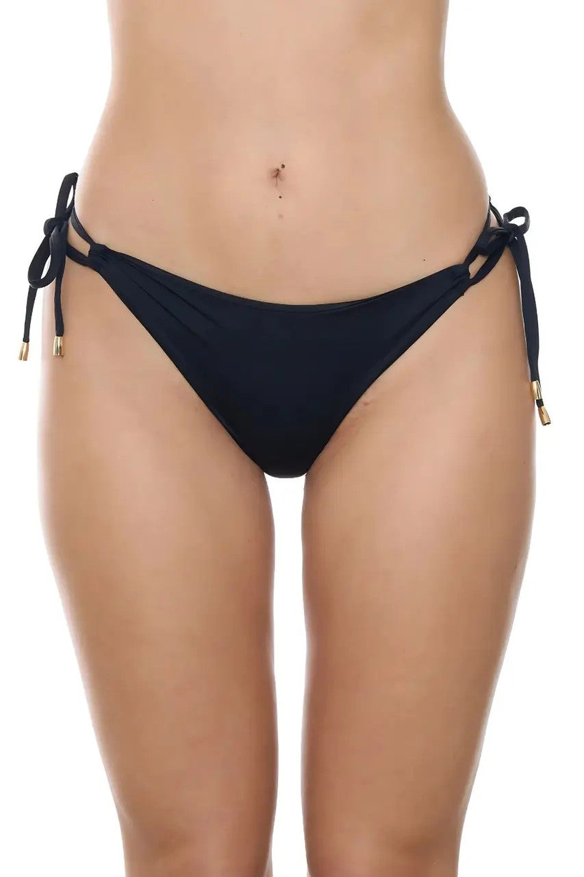 Wear elegance with the Triangle Bikini Solid Color with Gold Leaf Detail, a piece that expresses refinement and style. The costume, available in solid black and white, is enriched with exclusive details that make it unique: the delicate gold leaves on the top add a touch of luxury, while the gold metallic laces of the Brazilian bottom create a refined and luminous contrast.