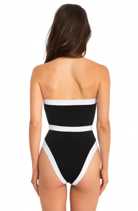 Made of two-tone lycra pique with recycled yarn.