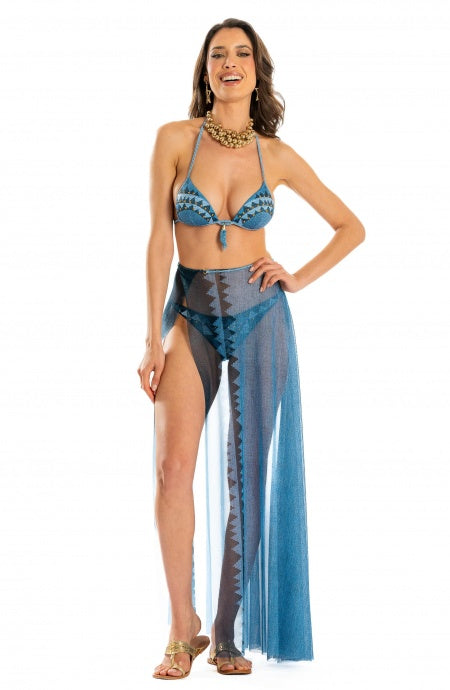 Extremely versatile soft tulle African Interlace print garment can be used in a variety of ways. As a pareo dress tied at the neck or used as a high or low waist pareo skirt. Comfortable and practical, perfect for any occasion.