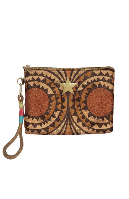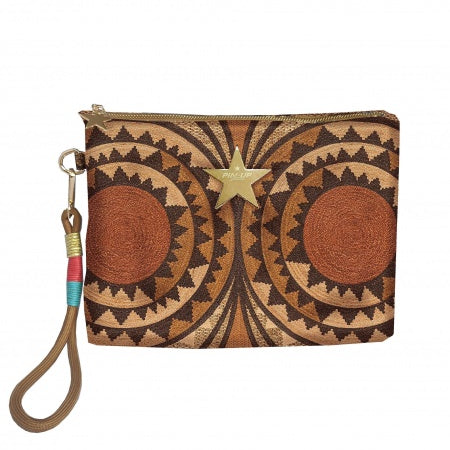 Elegant and bold, the underwired balconette bikini enhances and emphasizes cleavage. Removable padding and adjustable straps, enhanced with glamorous accessories, provide customizable comfort and support. The placed African Intreccio print features concentric triangles and circles that are cleverly composed to enhance the silhouette. Dome-shaped studs in coppery gold fan out making the garment unique and special.
