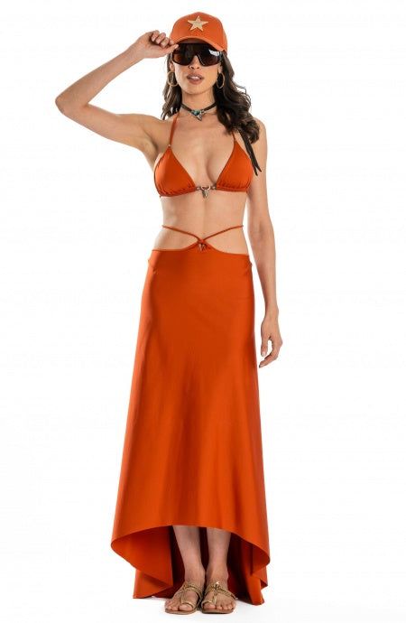 A cozy model suitable for generous breasts, the bikini brassiere is an easy chic garment in soft solid-colored lycra, perfect as an early-season bikini. The nickel-free aged silver horseshoe in the center bust defines and enhances the model. Wide color palette in solid color to match the sarong, long or short, in the same material or tulle.