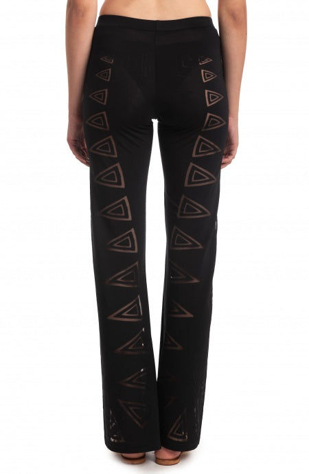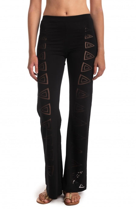 Comfortable yet seductive pants with elastic waistband and slightly flared leg in modal nylon jersey fabric and Tribal design. The original design is placed and the workmanship is handmade.