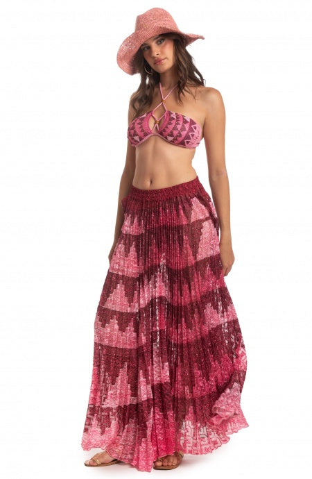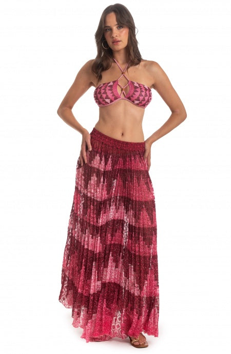 Bright and bold the high-waisted pant with elastic and slightly flared leg. Anaconda print shines on gold textured lycra fabric creating a must-have texture for those who like to be daring. Pair with the one-piece swimsuit for a full snake skin effect.